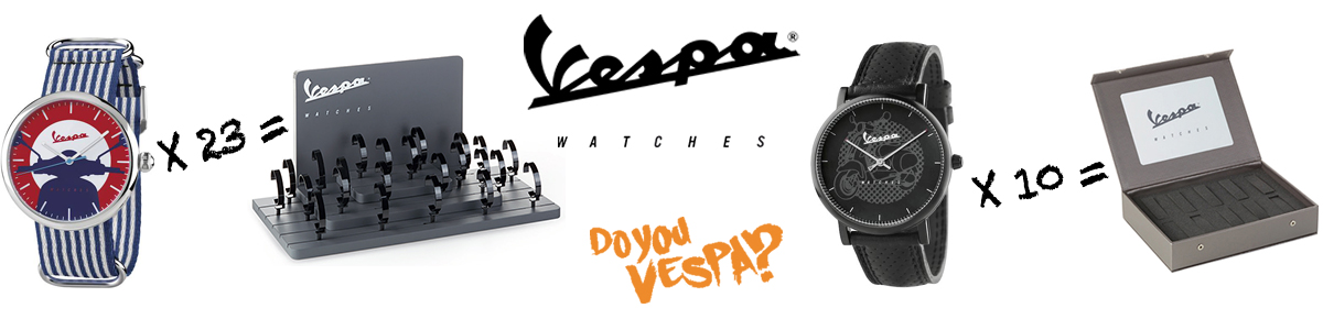 Encomende 23 relógios Vespa e oferecemos-lhe um expositor da marca! Compre 10 relógios e receba um estojo Vespa!